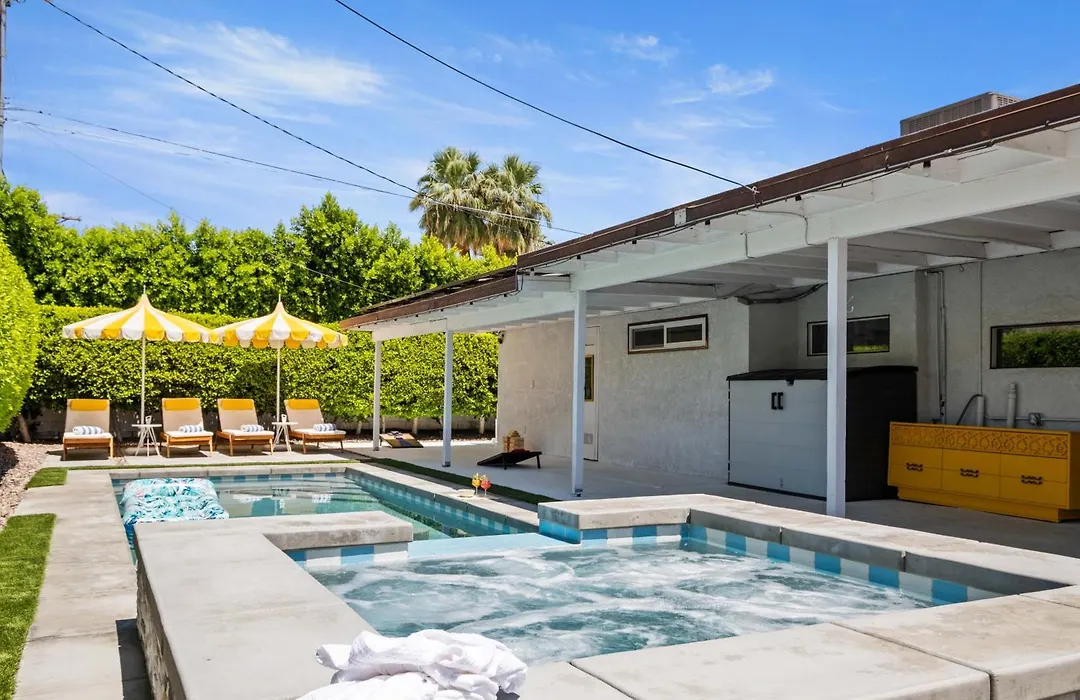 Die The Yellow Retreat verfügt über eine sonnige Terrasse mit Blick auf die Berge und ist 5 Autominuten vom Flughafen Palm Springs entfernt gelegen. Diese Villa bietet seinen Gästen ein entspannendes Erlebnis mit einem Jacuzzi.